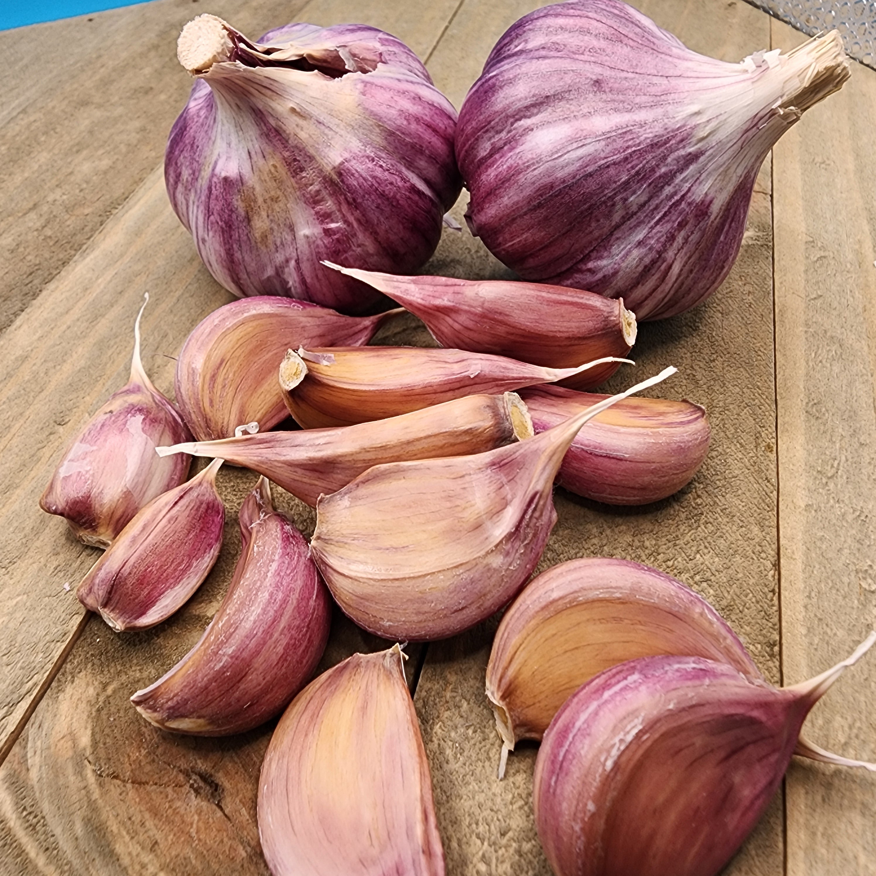 A very large bulb that contains 9-10 nicely colored, easy-to-peel cloves. Especially good for baking because it holds its shape, and keeps its delightful aroma. Originated in the country of Georgia.